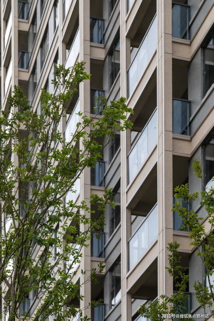 以简洁现代的线条表达立面感,加上对称的美学,使得建筑整体有着十足的现代感。同时, 更大的窗墙比,让每一户的采光都能保持更佳。