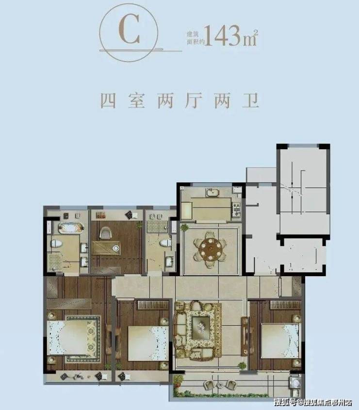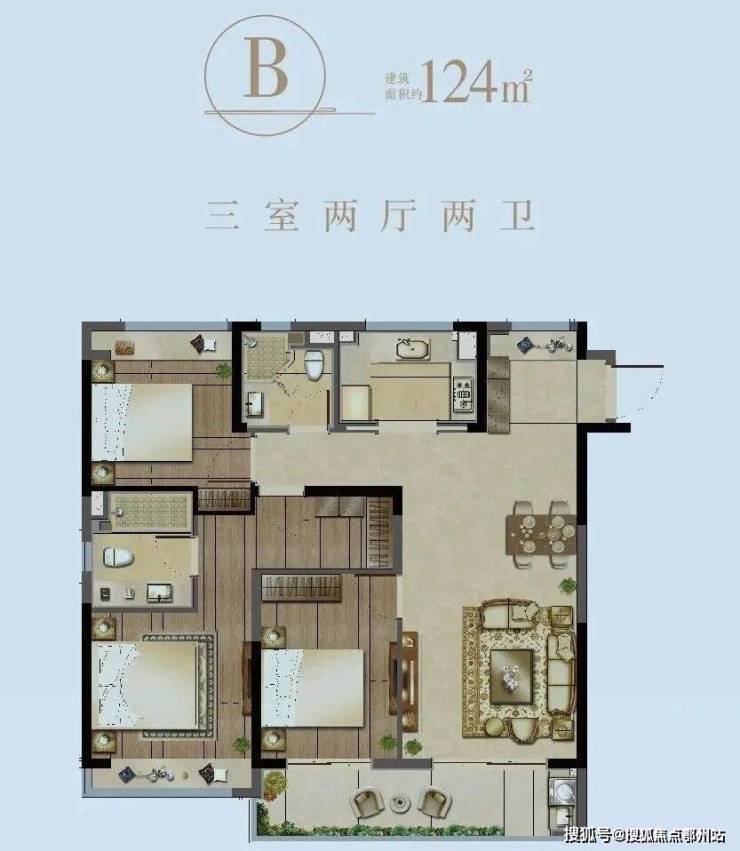 项目设计了建筑面积约96㎡的小三房、约124㎡的大三居以及约143㎡的洋房四室