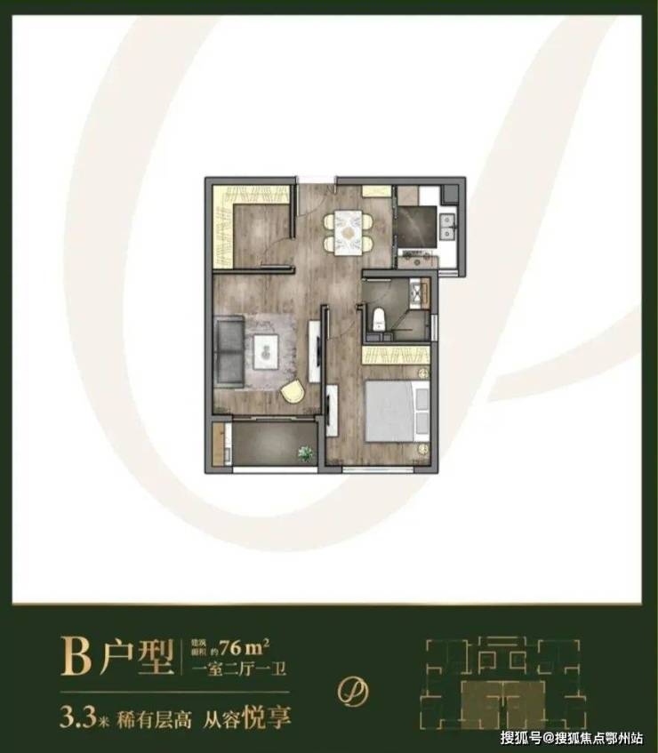 其中,建面约76m²1+1户型20套,总价494万起