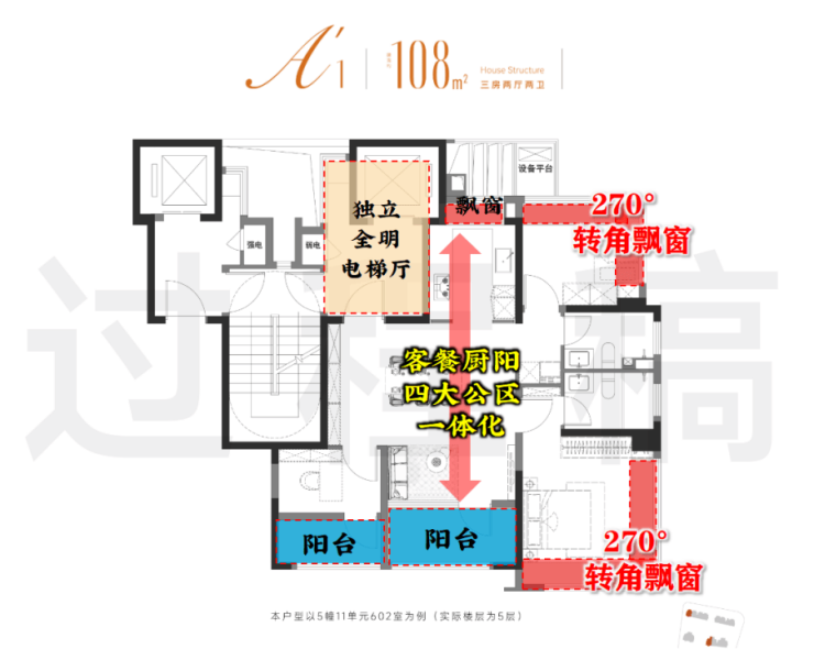 值得一提,当很多豪宅还在用转角飘窗打动客户,项目却在这个500w级新盘上拿出南北双270度「全景舱户型」。