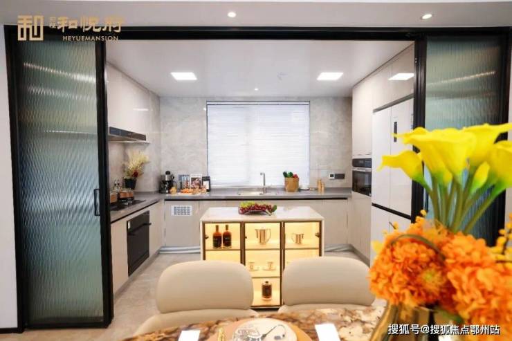 三个朝南开间带来充足的阳光, U型厨房布局, 烹饪时刻优雅自在,且与户门距离适中,避免了油烟困扰。