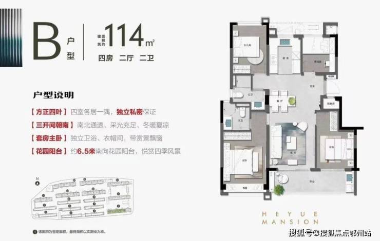 约114㎡户型还是标准的四叶草户型,4个房间互不干扰。南向还拥有约6.5米的超长阳台,可同时兼顾生活和休闲功能。