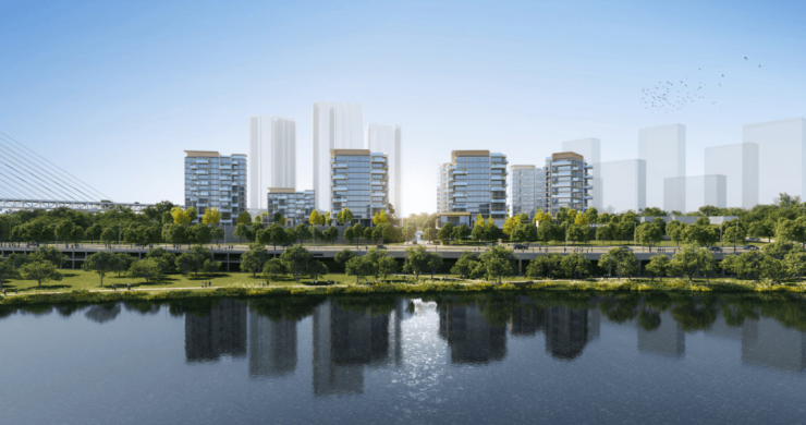 建筑与景观创新:外立面采用270°湾流曲线设计,搭配大面积玻璃幕墙,营造“漂浮在江岸上的山林”视觉效果;园区内设“江岸浮岛”主会所,结合高差打造立体花园与悬浮归家动线。