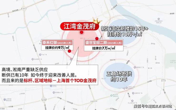 五角场同样如此,近10年断供;而新江湾次新房龄普遍15年+,挂牌价10万+/㎡,总价很高。久旱逢甘霖,这个片区终于等来了睽违已久的新供应!关键来的还是王炸——上海首座TOD金茂府,不仅将牢牢占据区域品质头把交椅,享受领先周边N代的产品体验。TOD综合项目的开发更将重塑板块格局,引领价值蜕变。