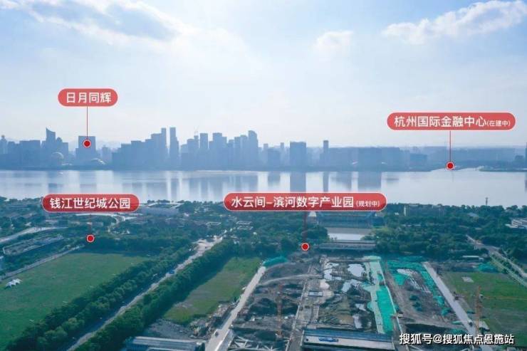 从世纪国泰中心窗前往外看:近处是滨河数字产业园(水云间)、大小莲花碗、杭州之门、奥体印象城等城市坐标。