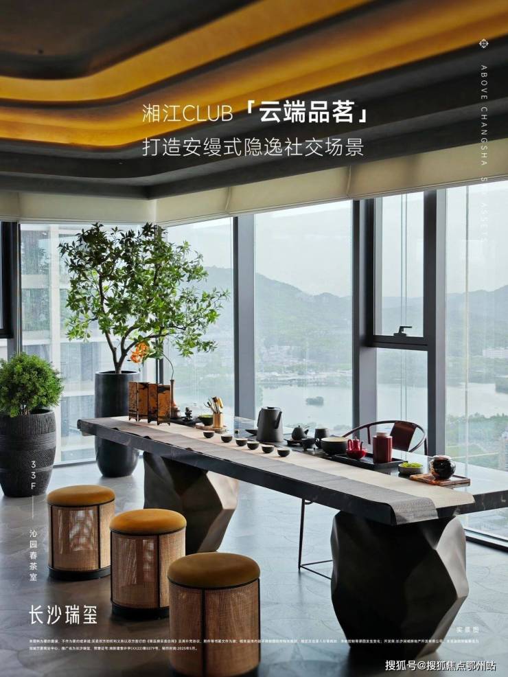 【湘江CLUB】云端品茗:《沁园春》私宴序厅,将中国传统茶道与现代商务美学结合,打造安缦式隐逸社交场景,重构塔尖社交范本。私宴序厅可以和私宴厅配套使用、也可以独立使用。当您有私宴使用需求,这个序厅可以和主厅连通共用,用餐前后可以和宾客在这里喝喝茶、棋牌娱乐,比酒店更轻松优雅。如果您有重要的商务会谈也可以跟我们预约单独使用。