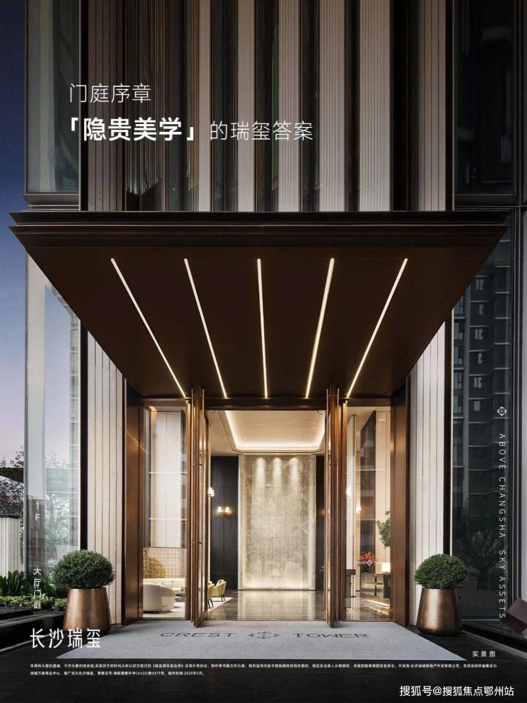 【隐贵美学】的瑞玺答案:首层入户大堂,约7.8米挑高,隐奢酒店风格,对标高端五星级酒店标准打造。门庭序章,隐贵美学的当代篆刻;光影如玺,铺陈塔尖圈层的山河纵横。