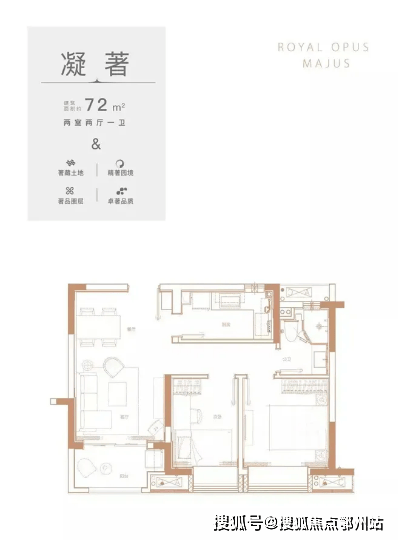 建面约72m²的两室两厅一卫设计,大大降低了置业门槛,对于刚需置业者也是非常友好的一个价格。户型方面,南北通透,居住舒适。两开间朝南,全明设计,采光面广。