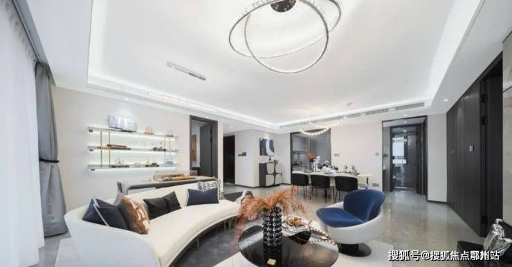 售楼处的内部空间,即 业主未来的入户大堂,精奢华美,极具艺术感,品质感和尊崇感从归家的第一场景开始; 下沉式会所设计前卫,各个分区的高端配置与城市精英的生活理念一致。