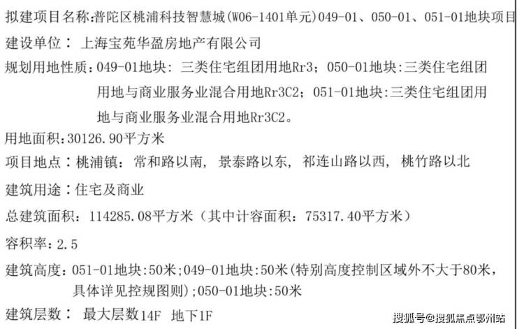 该地块东至祁连山路,南至桃竹路,西至景泰路,北至常和路,面积3.01公顷,容积率2.5,为商住用地。