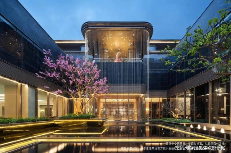 除此之外,会所还拥有下沉水光庭院,与周围建筑融为一体,如自然盆景。