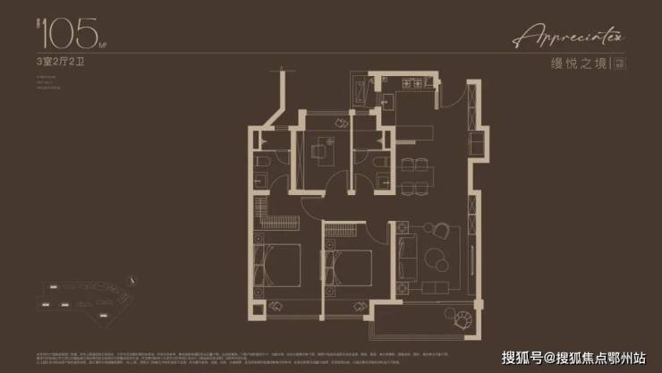 建面约105㎡3房户型,总价400万级即可上车!