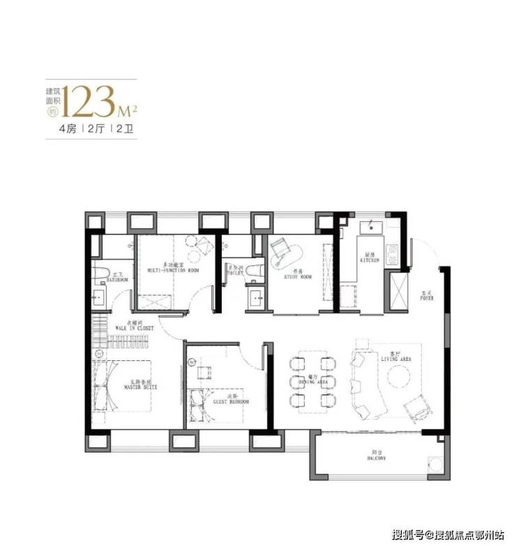 「星尚·观澜世嘉」共计4种户型,103㎡、107㎡的三房两厅两卫及123㎡、129㎡的四房两厅两卫,共计550套可售住 宅。
