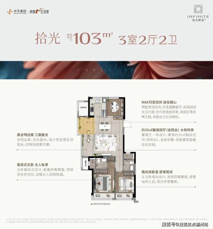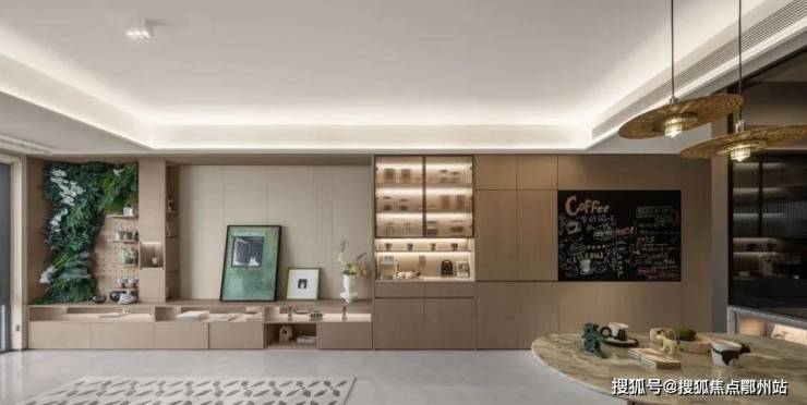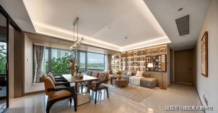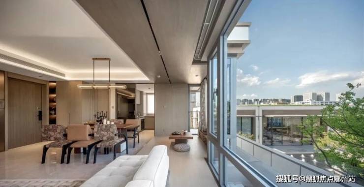 建面约103㎡的边套更是堪称神迹,将小户型的空间魔法玩到了极致。 客厅到阳台的地面、 天花直接拉通, 甚至两侧的墙垛都已隐身, 整个餐客厅面积达到约35㎡(含阳台),这可是140㎡以上大宅才有的空间感!