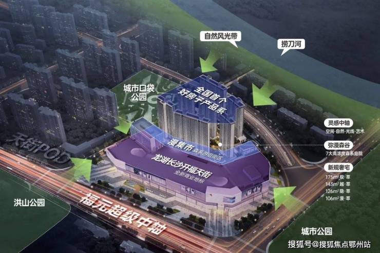 择址城芯福元中轴之上,首座漫步式POD生活场,打造建面约106/127/143/175㎡环幕新规奢宅;