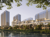 同时项目西、北两侧拥有约1000米原生水岸+约20米宽生态河道+约270°广角河景,生态环境极佳。在社区内部规划了“双轴五巷十园”的景观概念,针对不同年龄段客群的生活方式设计了专属空间,先天优势+后天规制,也意味着领墅为自然作出的退让,让项目可以拥有更多的空间去施展关于景观的抱负。