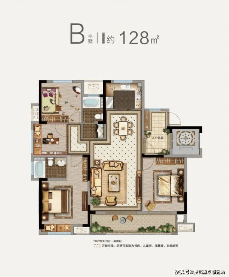 2.居室:(4)室(2)厅(3)卫(1)厨