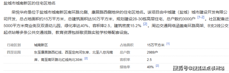 荣悦华府项目位于盐城市城南新区康居路(南环路与康居路交汇处),由中城建(盐城)城市建设开发有限公司开发建设