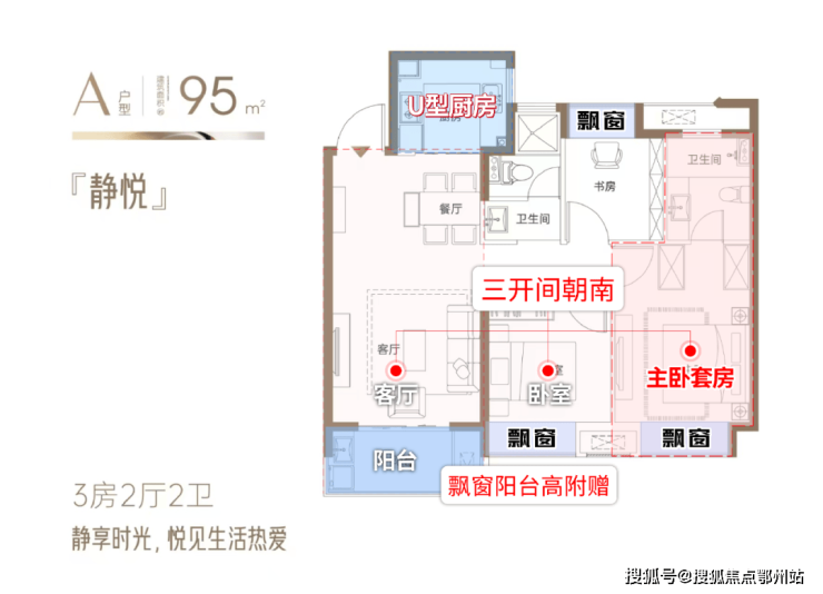同样是设计水准一流的神户型,做到了 三开间朝南+主卧套房+三飘窗+南向观景大阳台,空间利用率以及营造的舒适度都保持在较高水准。
