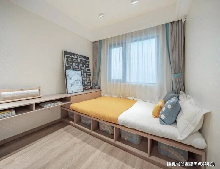 北向独居一隅的儿童房,给予孩子独自成长的天地;南向带阳台老人房,近5㎡的阳台可以放下一张椅子和茶几,