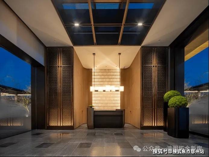 例如,在归家的动线上,保利以古代“提灯夜游”为灵感,将“灯”这一意向穿插其中——在公区入户大堂内,造型别致的壁灯格外惹眼,其灵感来自于“中国古典豆形灯”;落壁灯则是以古铜不锈钢搭配仿透光云石灯具,营造出朦胧的光晕氛围,颇具东方意蕴。