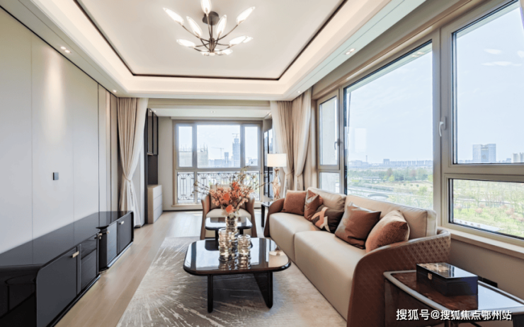 为了实现更优的居住体验,公园道的精装设计再度升级,阳台与客厅采用一体化无阻隔装修,拉长进深,使空间观感更通透、采光更优越,同时也进一步延展了家庭活动空间。