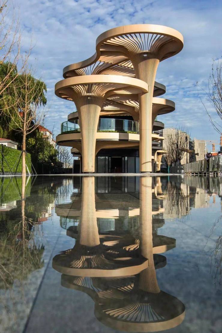 雨林市集:作为项目的售楼处已经基本实景呈现,以先锋、独特、瑰丽的外观形态,成为上海西南新的艺术地标。