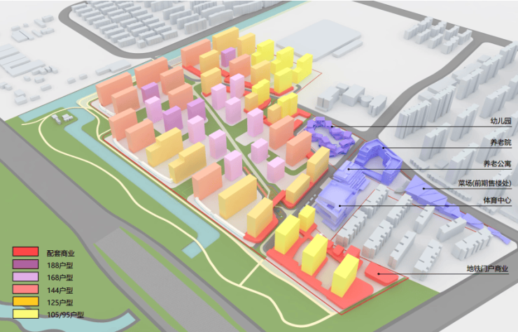 【天安1号】 总用地面积17.88万㎡,由住宅、体育中心、养老公寓、养老院、幼儿园、商业组成。
