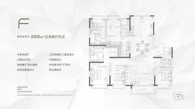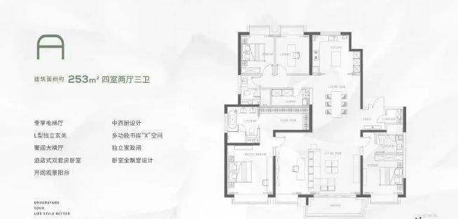 尤其是209㎡四叶草格局的王炸户型,独立电梯厅、国际一线精装、双会所、约3.5万方园林景观、无边际服务、自带约10万方合生汇商场配套,约500米一线临江!