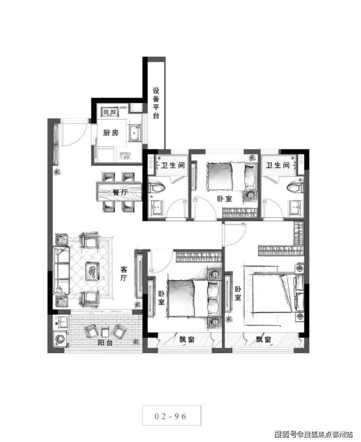 金辉·半岛云著二期建面约96㎡装修设计建议图