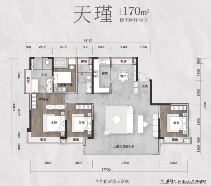 项目规划建筑面积约120㎡、139㎡、170m²户型,以“巨幕大横厅+多开间朝南+主卧套房+270度景观飘窗” ,将高定理念渗入每一处空间,完美演绎中国进阶家庭的生活尺度与品位。
