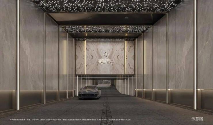 更以精工匠艺缔造约50米超长门廊,辅以天然石材纹理拼接,更有树姿古雅迎客罗汉松,营造尊崇归家氛围。