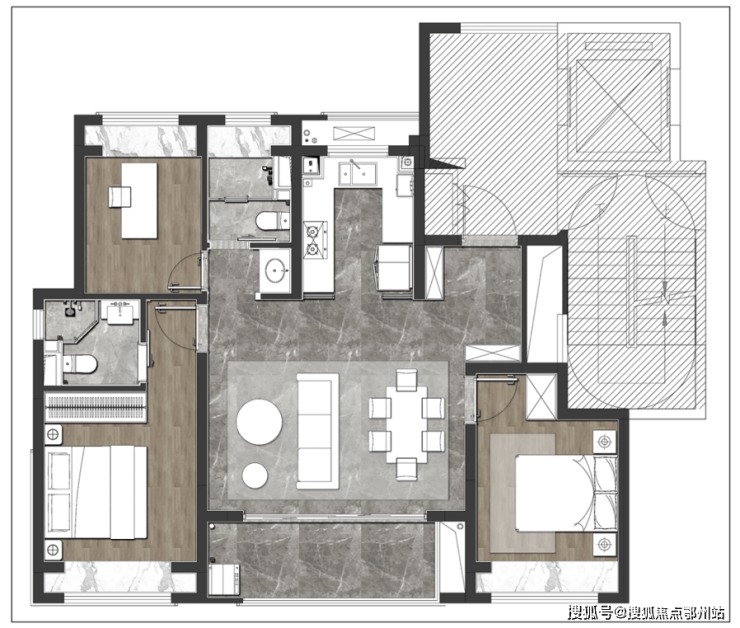 建筑面积约100㎡三房两厅两卫,构筑老、中、青三代人美好生活蓝图。独立玄关,方便收纳。