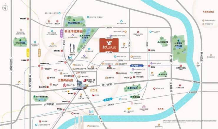 【越秀·杨浦天玥】 位于杨浦五角场板块,五角场,因五条发散型大道的交汇处而得名。