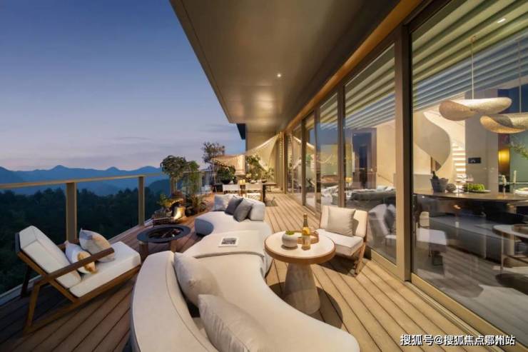更重要的是,阳台与露台直接对着连绵的青山。当你坐在客厅沙发上或者躺在床上时,你会感觉群山就在露台上,就在阳台上。到了夜晚,群山就变成了闪耀的星空。