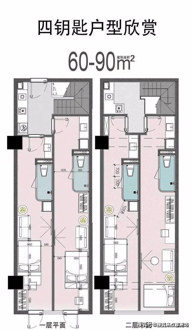 四钥匙户型, 在双钥匙的基础上再度创新,上下两层空间,4把钥匙,从创业到居住,从1人居到3代满足多种需求,实现空间的极致利用。