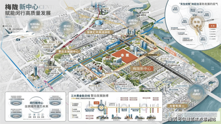 项目定位:闵行梅陇新中心16万方滨水大城,融合“花语系”与“拾系”产品线