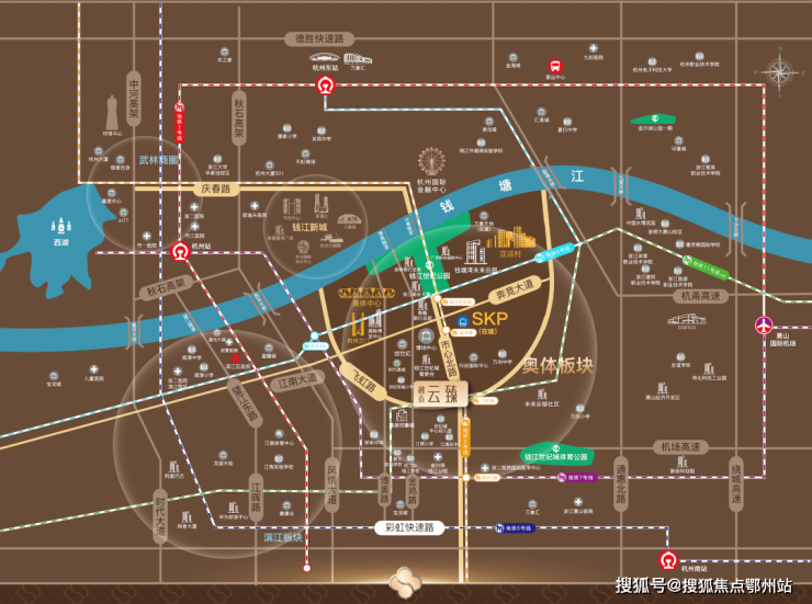 本案位于杭州萧山钱江世纪城奥体板块,与钱江新城合称“杭州CBD双核”,集合板块内优质配套资源,繁华触手可及。项目傲领钱江世纪城奥体核芯,东临市心北路,南侧飞虹路,坐拥“2横3纵3隧道4铁”交通便利,高效通达长三角及世界各大重要城市。