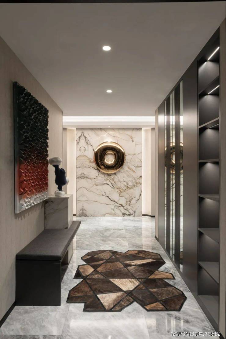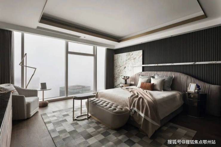 在工艺标准层面,项目采用土耳其EK级抗紫外线绒布墙面系统,配合法国JOJO无框防眩光照明体系,形成具有未来感的视觉语言。特别定制的重型闭门器系统单个造价逾万元,印证其超越常规住宅的营造标准。