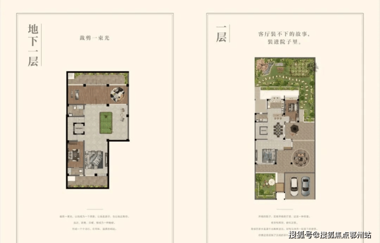 一楼:南北双花园,北入户,北侧有两个停车位,室内有一个老人房,厨房和客厅,南侧拥有超大的花园;