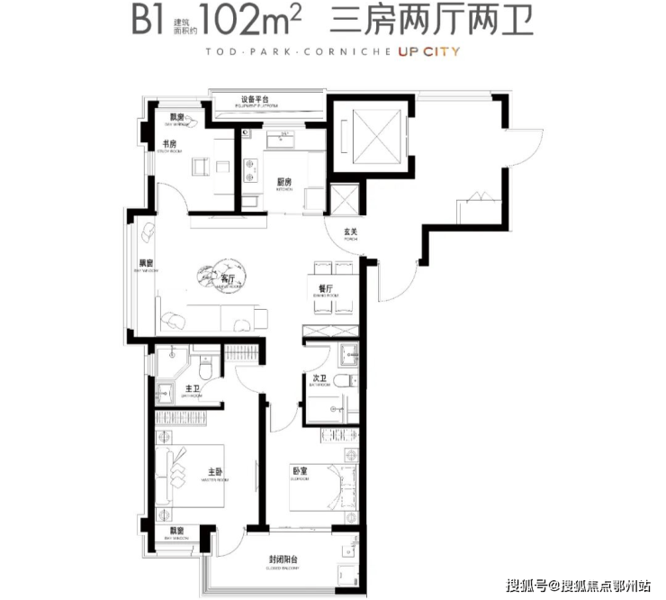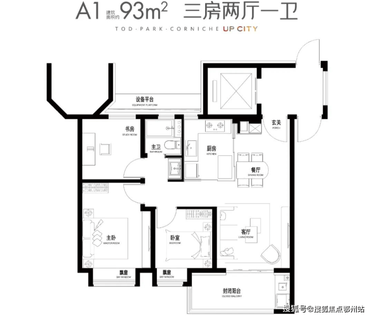 此外,项目还有建筑面积约93㎡3房1卫和约102、103㎡3房2卫