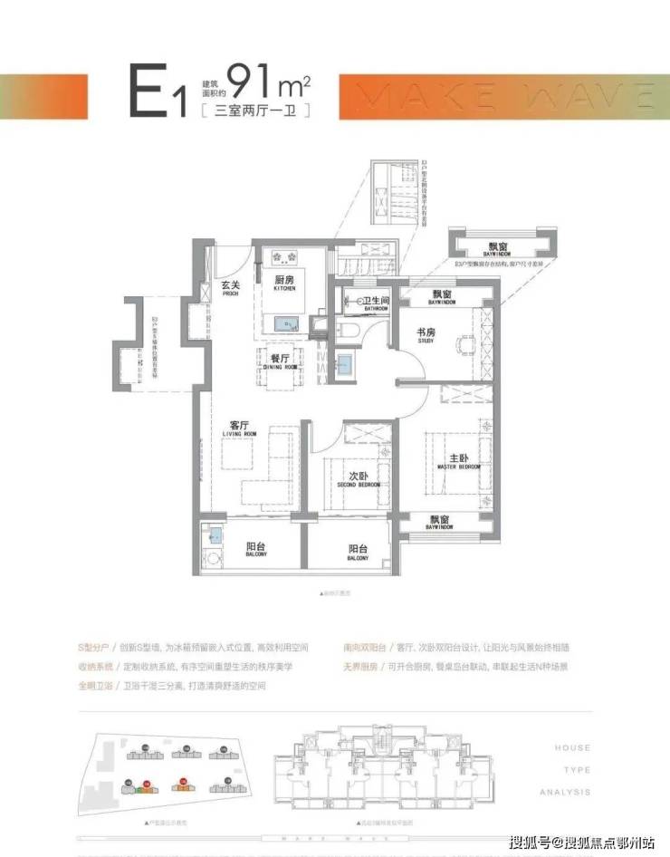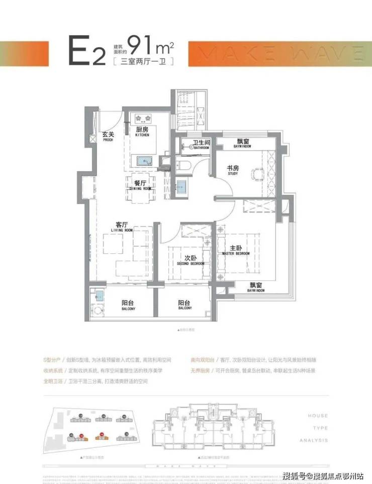 “南向双阳台+南北双飘窗”,构筑真3房户型!