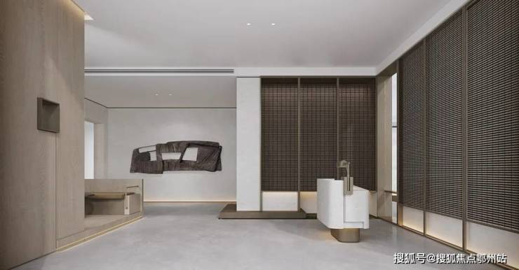 室内设计,秉承摩登东方的理念,设计以人、生活为中心,从空间本体和情感层面都回归生活,270度环幕采光,开放式会客厅设计,兼具尺度感与功能性。