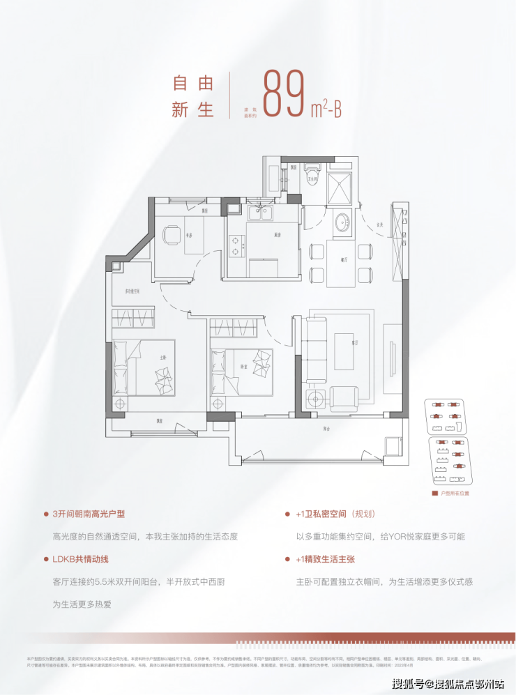 除了三开间朝南的经典户型,89m²还做了三面通风的户型。