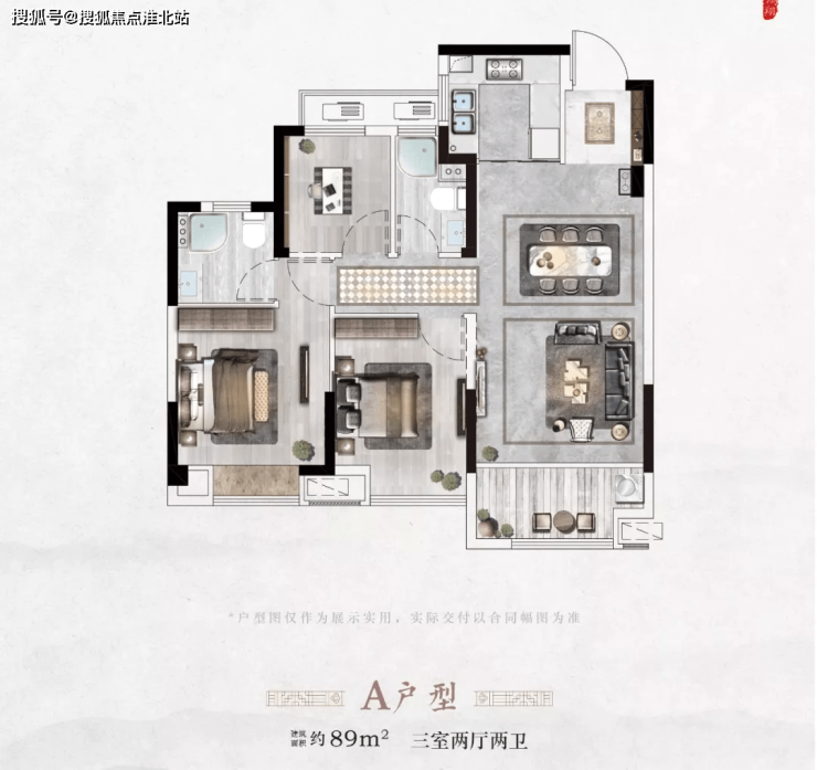 面积:72㎡二房两厅一卫,89㎡三室两厅两卫,85㎡三室两厅一卫