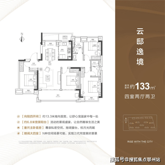 据了解,133m²首开仅约22套,位于8#楼东边户。据样板间提示,东西边户主卧飘窗为转角飘窗。