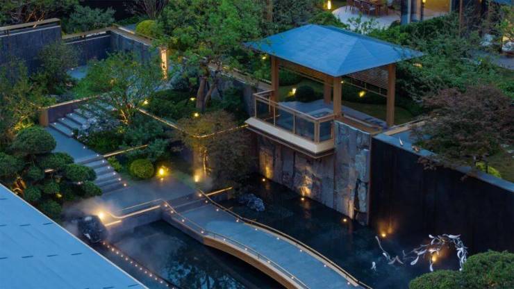 镜池映天光,游鱼戏云影;画廊引清风,竹影摇月光;亭台揽星河,飞檐挑夕阳。 中天 ·樾青岚以山水、楼阁、桥廊为格调,营造出叠山映水、动静天成的诗画园林,“登山”、“探园”、“观瀑”,游走其间,恍若穿越 《千里江山图》 。身在园中,心在画里“不出城郭而获山水之怡,身居闹市而得林泉之趣”,四时景异,晨昏变幻,美不胜收。