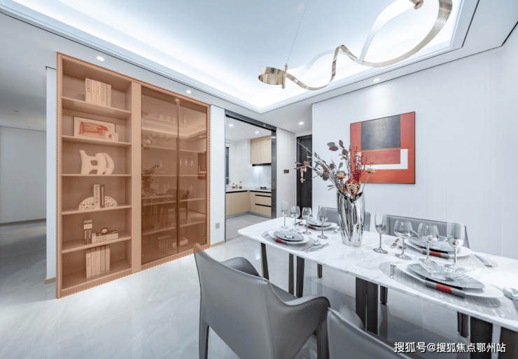 建面约108㎡样板房,餐厅置物柜位置提前预留