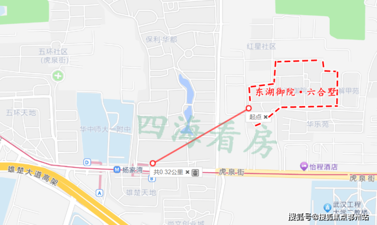 东湖御院·六合墅位于虎泉街杨家湾地铁站附近,在楼市划分中属于光谷广场板块,行政划分属于洪山区,属于三环内。