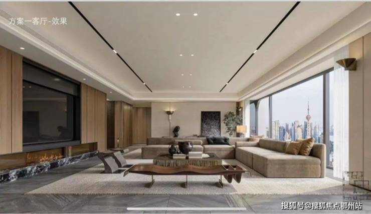 超80%的得房率,LDK一体化厅+西厨岛台,L型大面积转角落地窗,呈现出270度的幕布视野,这个王者公区的尺度不到现场来看,根本是你想象不到的震撼!